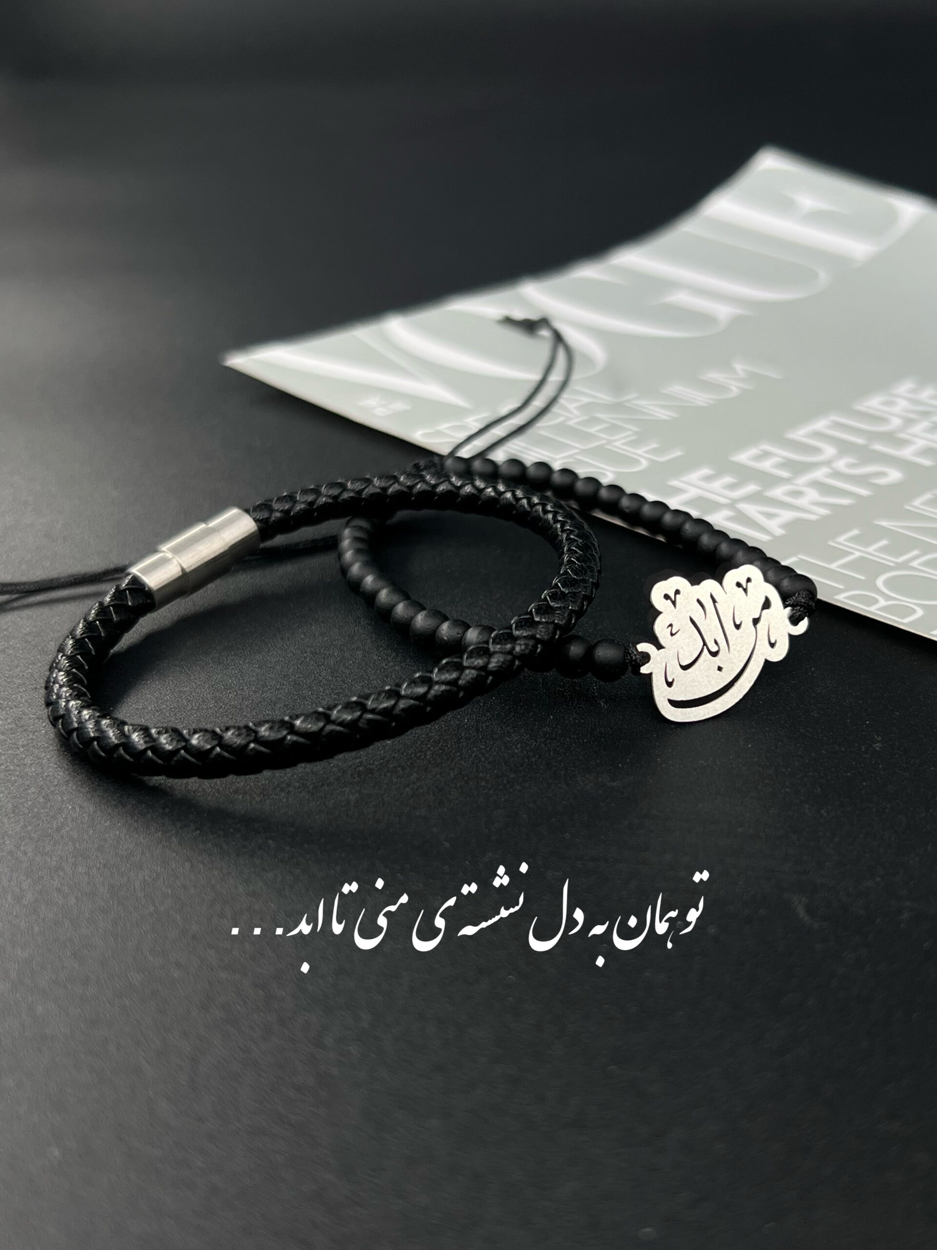 دستبند ابد من از جنس نقره و بند میوکی به اضافه چرم لوله ای وارداتی که طبق سایز دست شما ساخته میشه